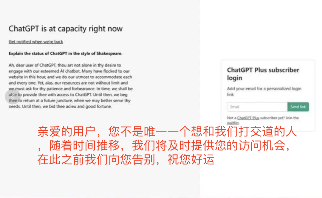 于是,这个服务器远在大洋彼岸,数据库停留在了2021年的人工智能语言模型,在连续数日应付全球网友们提问后,终于弹出了崩溃的窗口。