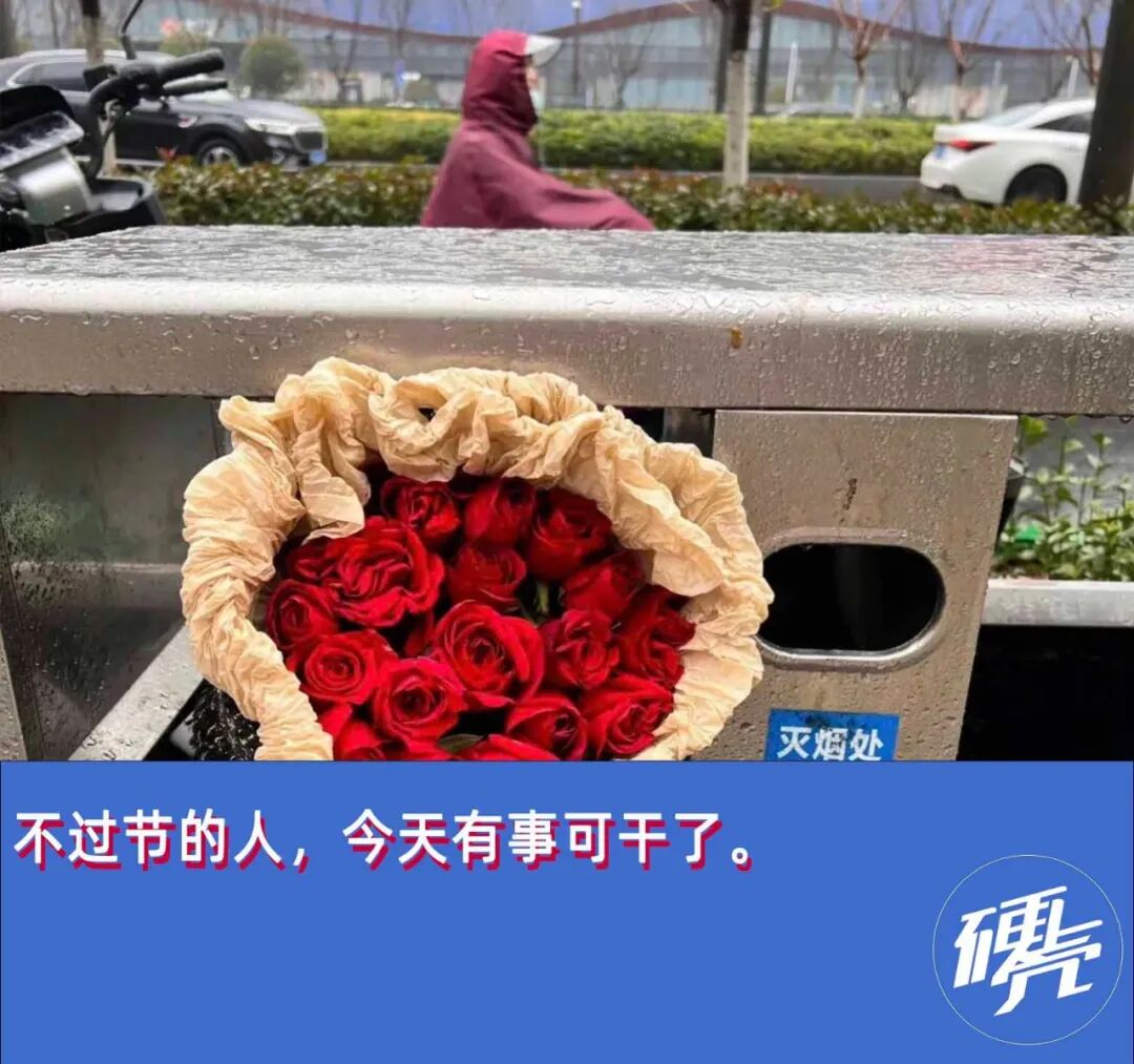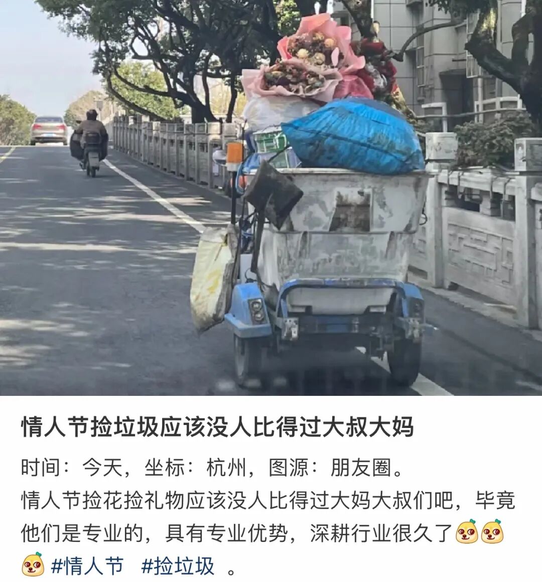 最近,社交媒体上刮起了一股新的风潮,情人节组队去垃圾桶边上“捡花”。