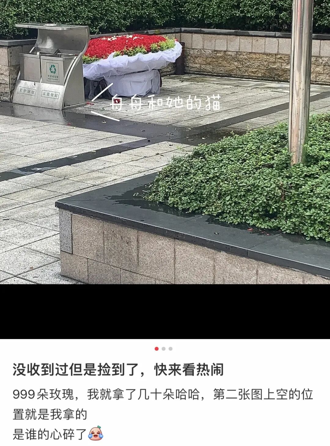 有人在垃圾桶边上捡到了999朵玫瑰,想带回家又发愁如何处理。
