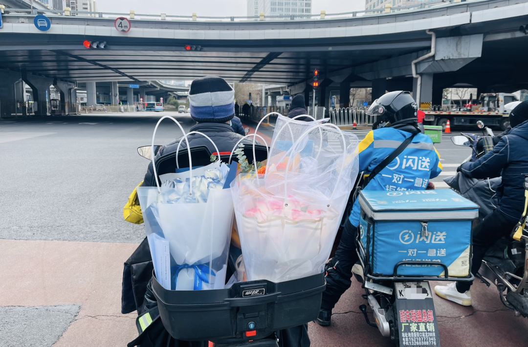 花店门口早早排起了长队,路上快递小哥后备箱里也被塞满了花束。