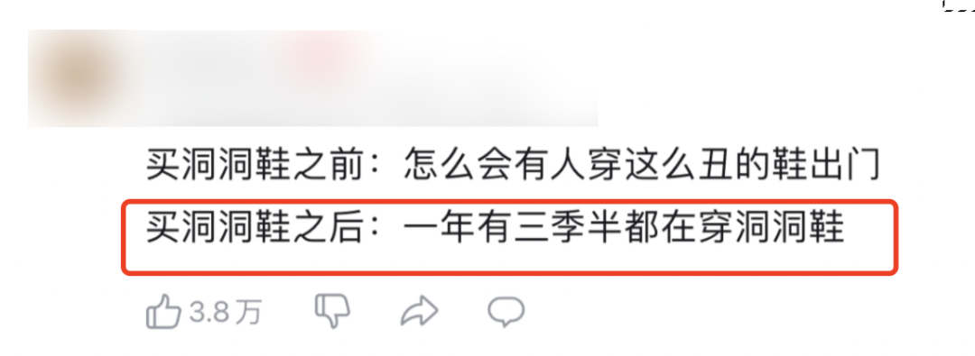 在社交媒体分享“洞洞鞋”成为一种新风潮,只要关于穿着感受的帖子都会收获很多赞同。