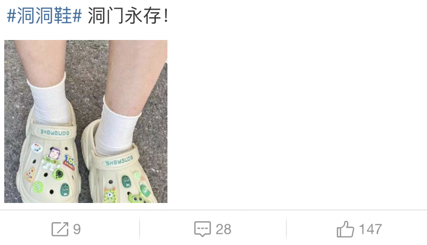 一时间,无数年轻人脚踩“洞洞鞋”走上街头,并把这种鞋子推荐给身边人。