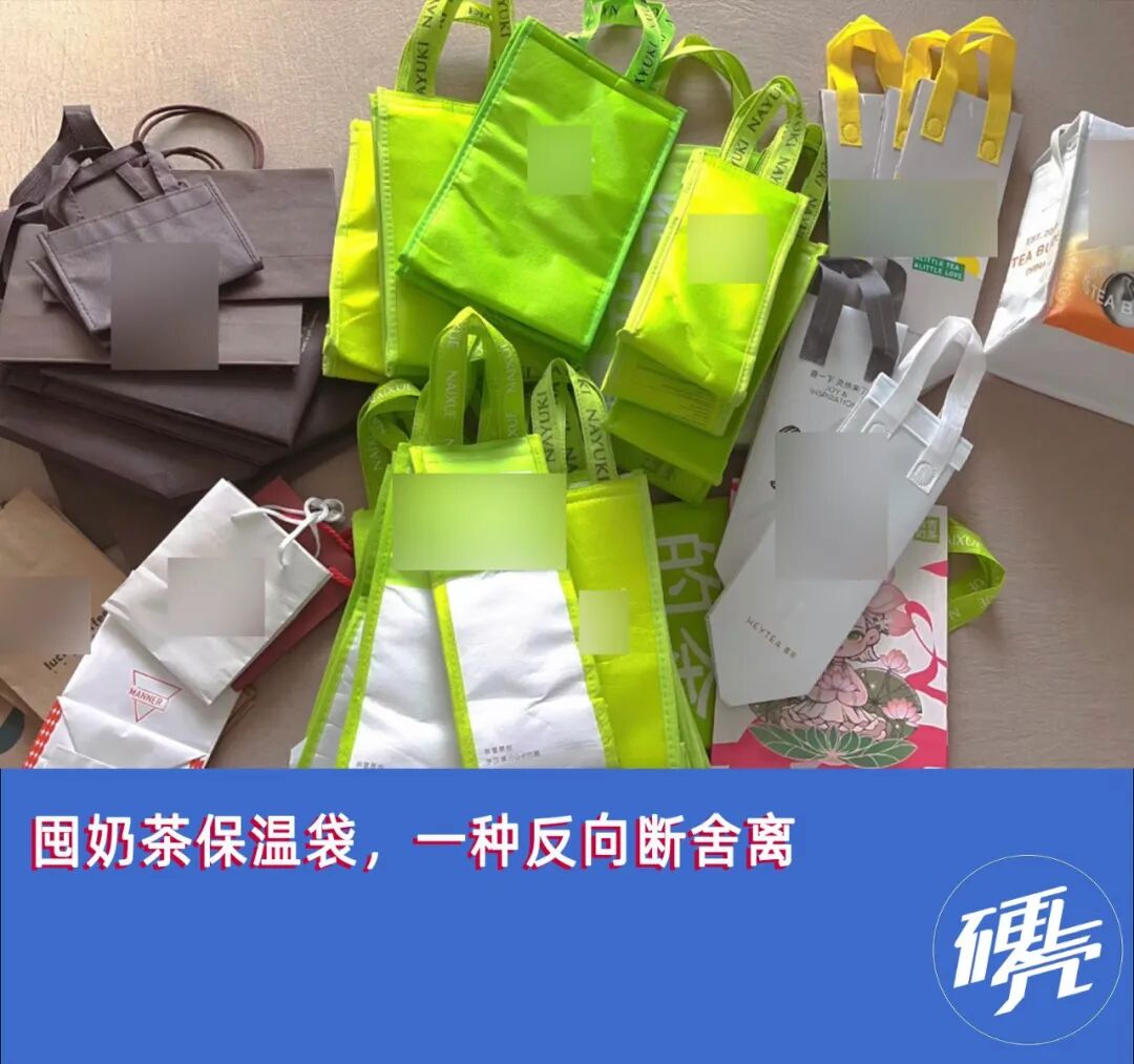 如今人们对奶茶保温袋的囤积,也被看作是一种主打实用主义的“反断舍离”。