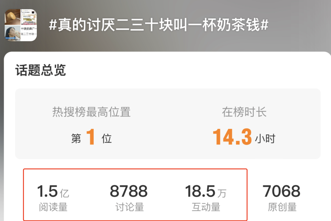 前几天微博里有一条热搜“很多人讨厌把二三十块叫成一杯奶茶钱。”