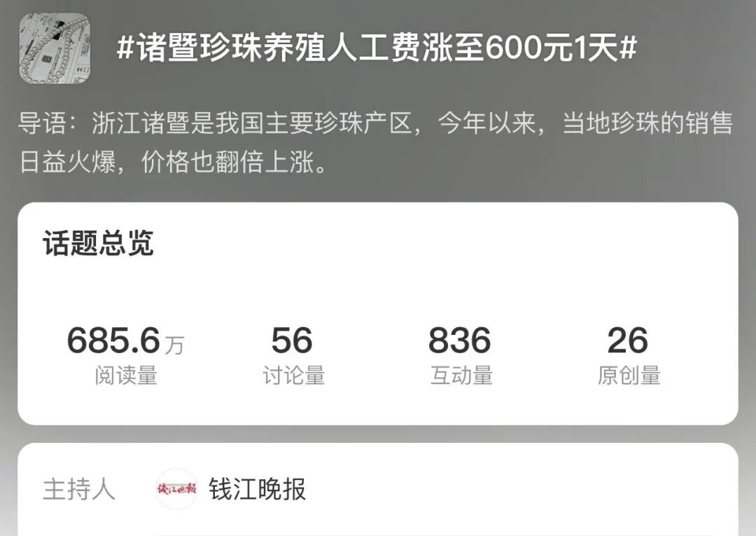 一些商户向我们透露:“虽然珍珠是可再生资源,但极度依赖母蚌培育和水体环境,很多人担心日本排放核污染水后可能会对珍珠蚌造成影响,这侧面造成珍珠价格的上涨。”