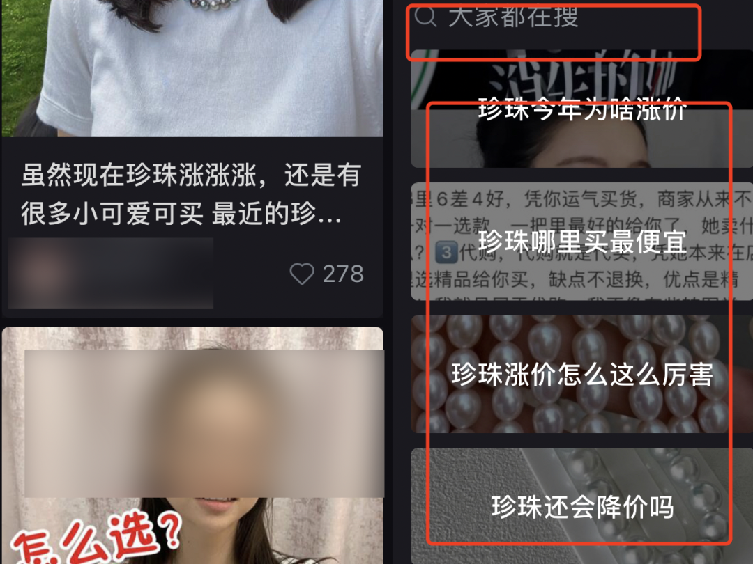 而在小红书平台,关于珍珠涨价和珍珠搭配的帖子,热度同样很高。