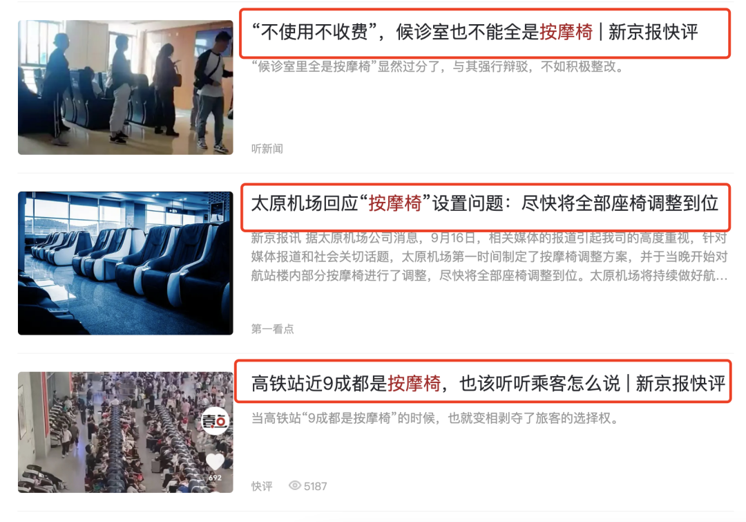 去年8月,一些城市的高铁站因设置大量共享按摩椅引发讨论。
