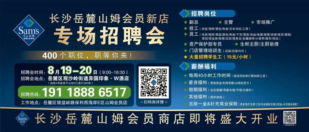 工作地址:长沙岳麓山姆会员商店