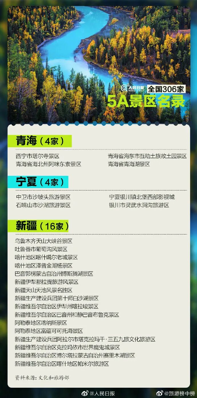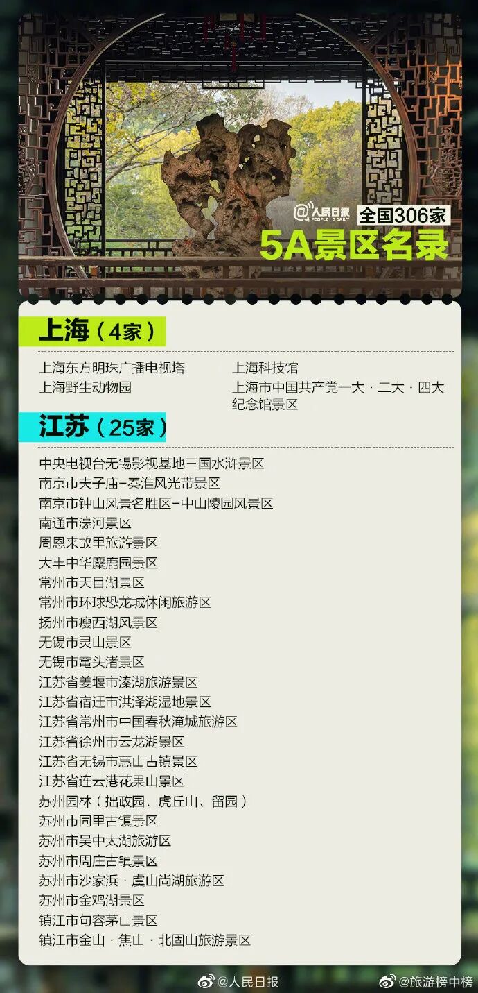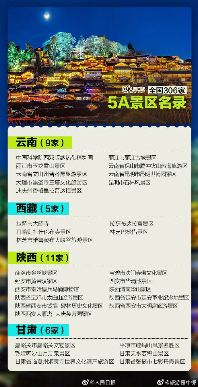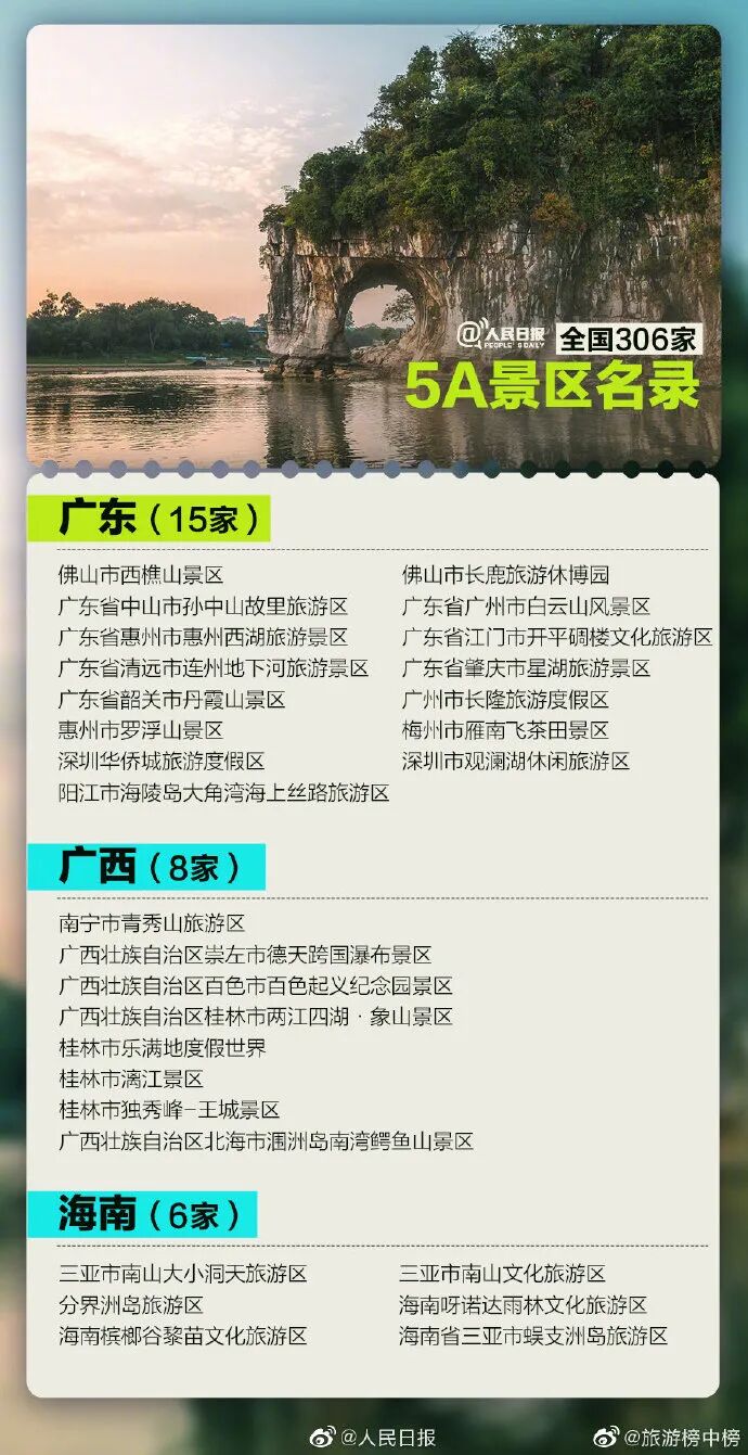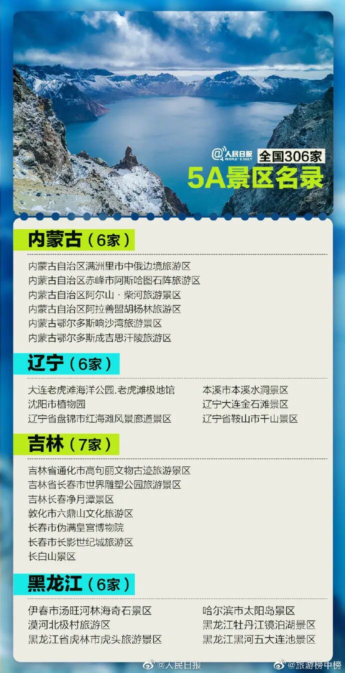 最新国家5A级旅游景区名单