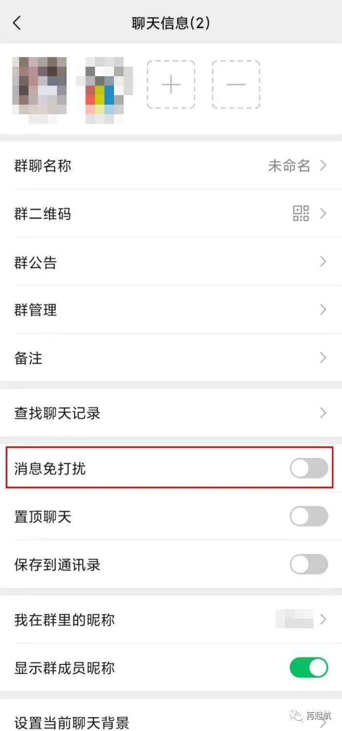 方法就是——开启消息免打扰并设置关注的群成员