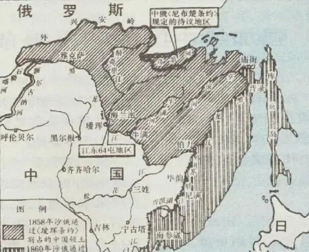 清朝中后期国势日衰,第二次鸦片战争中,1858年清政府和沙俄签订不平等的《瑷珲条约》,规定包括海参崴的乌苏里江以东地区为中俄共管。