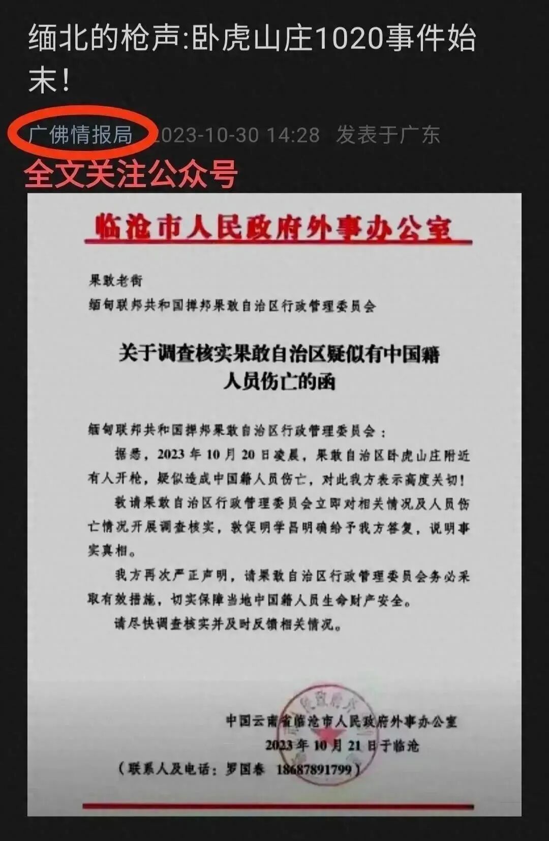 1020事件:果敢武装枪杀中国籍被扣押人员引发反诈之战近年来,在缅甸果敢老街明学昌家族控制的卧虎山庄死去的中国人有几百人,据说其中还包括便衣警察,实属穷凶恶极,罪大恶极。而十天前的2023年10月20日凌晨,缅甸果敢老街明学昌家族控制的卧虎山庄电诈园区因中方反诈压力而转移中国籍被扣押人员前往白鹤公馆,导致中途被扣押的中国籍人员反抗逃跑,负责押送的果敢警察21营(明家控制)随即开枪射杀,死伤70余人。果敢警察21营追逃无果后将带头反抗的4人活埋在橡胶树下,这就是震惊果敢的1020事件。
