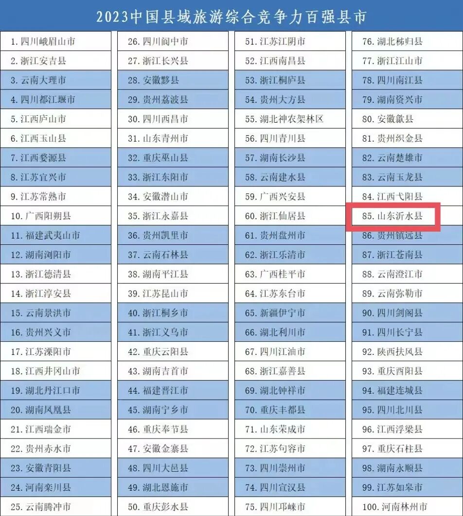 沂水县,再次入选中国县域旅游综合竞争力百强县称号,这是沂水县连续六年获此荣誉!