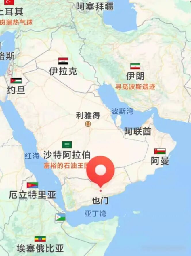 也门共和国,位于阿拉伯半岛西南端,国土面积52.8万平方公里,和沙特阿拉伯、阿曼接壤,西边是红海,南边是阿拉伯海,沟通两个海洋的就是亚丁湾。位于中东国家旁边的红海是世界上最重要的石油运输通道,其北端的苏伊士运河和南端的亚丁湾更是咽喉要道,可见也门的地理位置非常特殊。