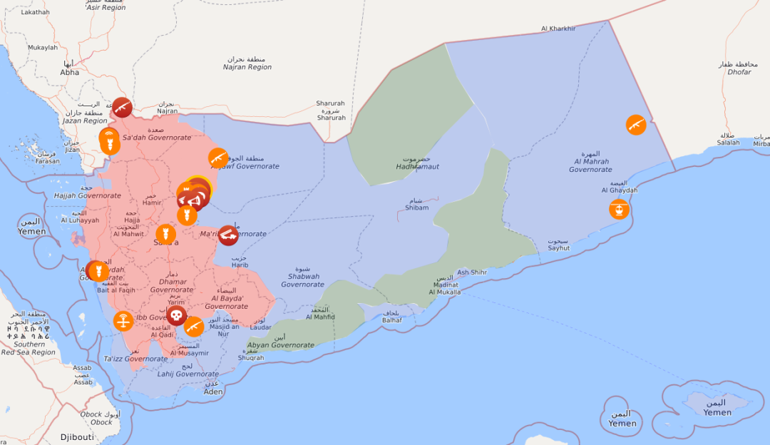 也就是说,目前也门这个国家严重分裂,并且一旦出现任何动荡,都有可能牵连周围其他的国家(下图为截至2020年3月也门国内各势力控制区,橘红色为胡塞武装,蓝紫色为政府军,绿色为基地组织)。