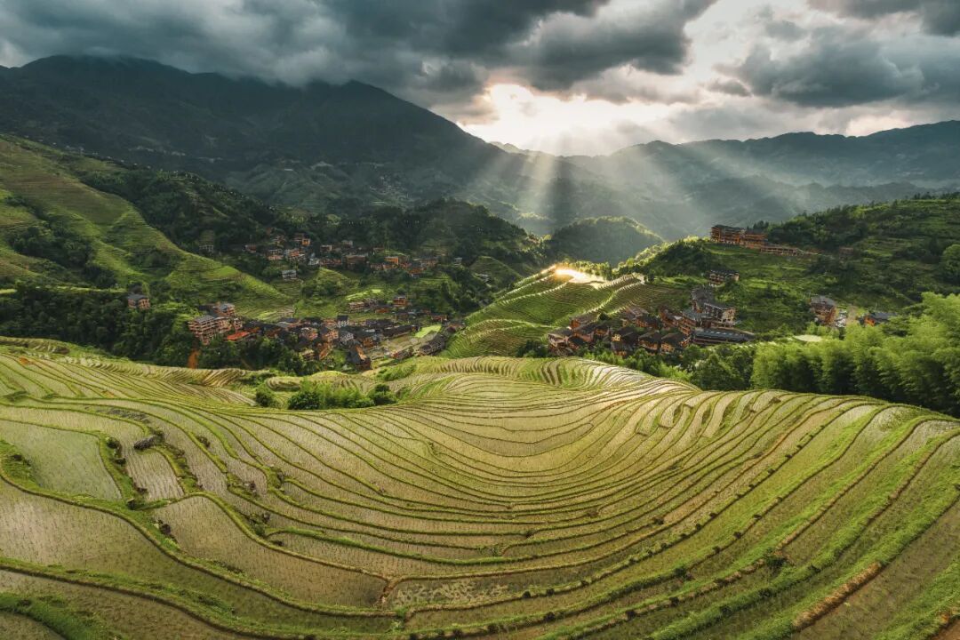 中国最美的梯田之一,龙脊梯田,一年四季的风光各不相同,在这个规模宏大的梯田群,这里坐落着几个少数民族古寨,原生态的乡村风情,就像是与世隔绝的世外桃源。梯田大气磅礴,条条蜿蜒曲折的田垄,线条行云流水,如诗如画。