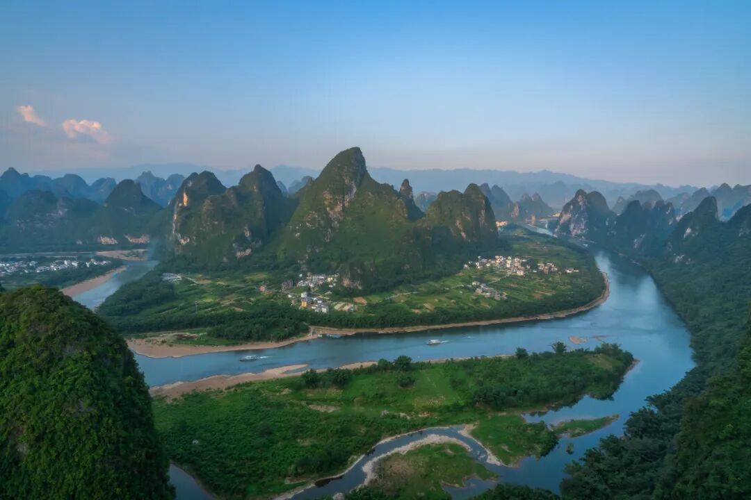 如诗如画的十里画廊,是到阳朔骑行必打卡的景点,可以无死角地欣赏壮丽秀美的山水风光,如诗如画,让人流连忘返。在这里可以看到形态各异的群峰连绵起伏,和山脚的田园山色组成了一幅绝美的山水画。