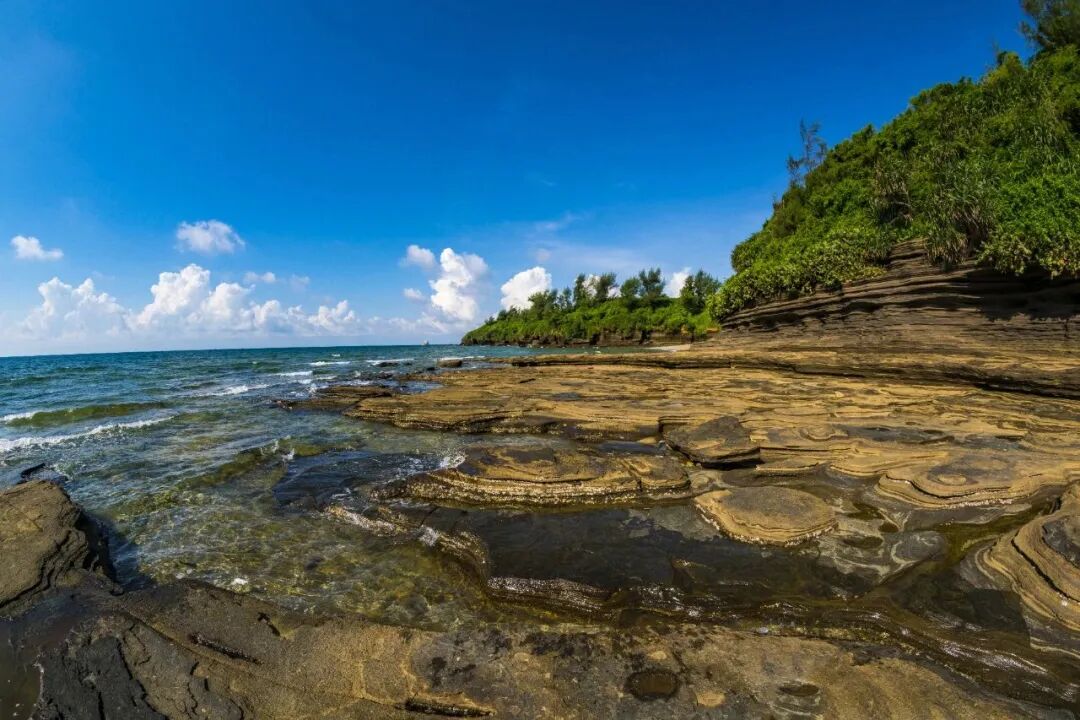 冠头岭是北海市区最高的一座山,不仅有茂密的森林,还有千姿百态的海滩。沿着礁石海滩漫步,欣赏日出日落美景,感受北海独有的浪漫。还可沿着步道登山,登上山顶远眺周边海岸风光。