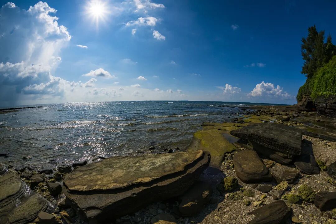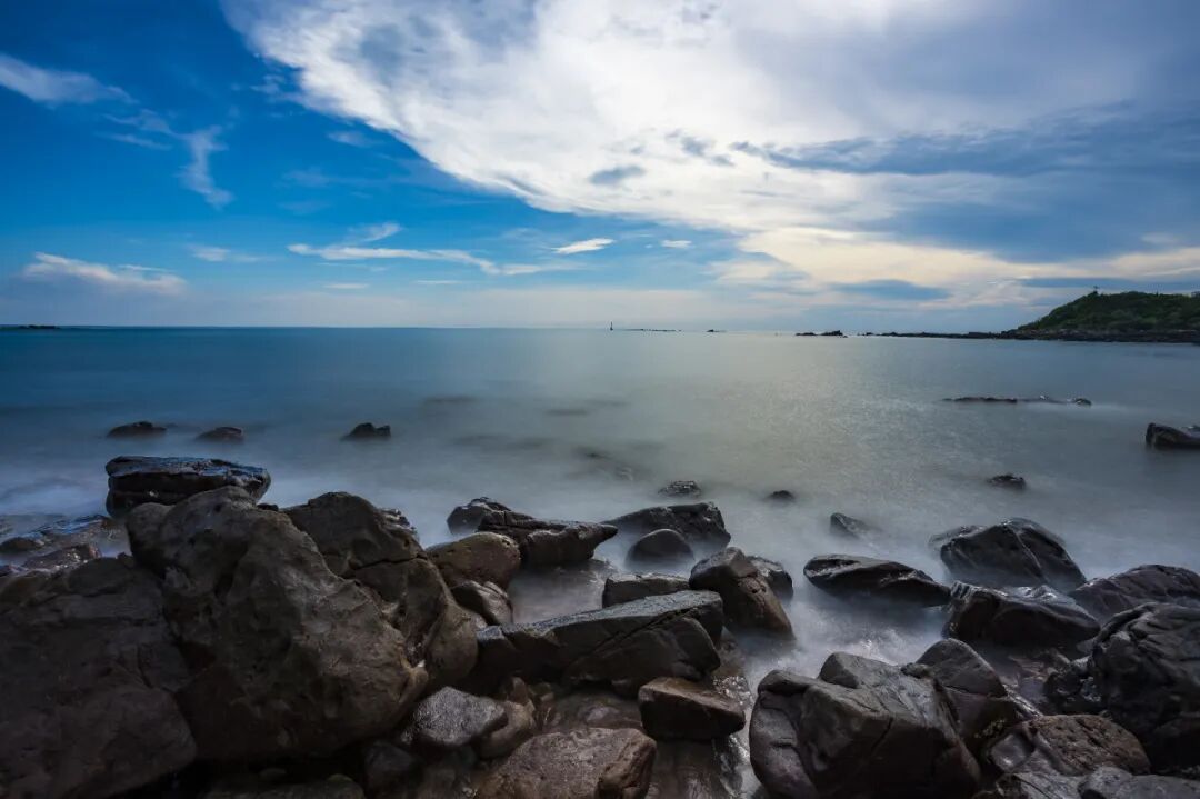 怪石滩是海蚀地貌,这是一片石头海滩,在这里可以看到形态各异、奇形怪状的天然石雕群,沿着怪石海滩散步,赏绝美海景,感受别样的海滨风情。