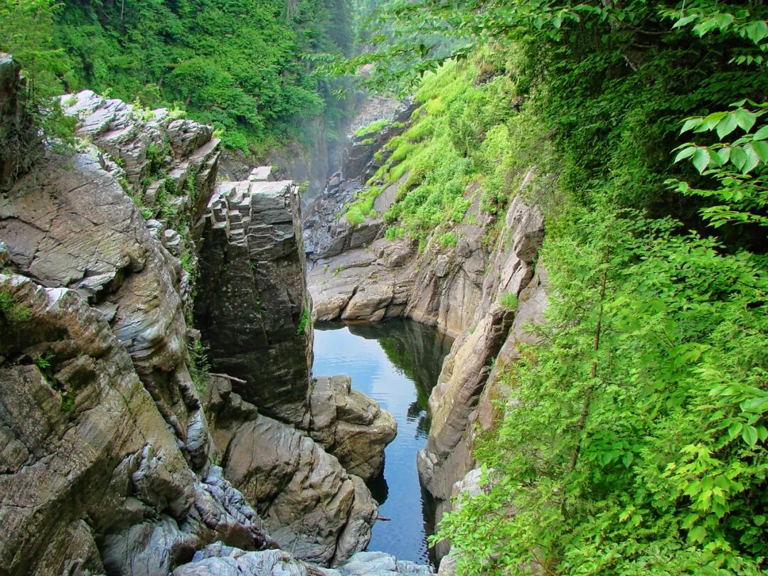 通灵大峡谷,是罕见的天堑,宛如地球上一道美丽的伤痕。峡谷内植被茂盛,古树盘根错节,郁郁葱葱,也被誉为中国最绿的峡谷。峡谷四周悬崖峻峭,瀑布飞泻,清澈的溪流和苍翠的植被遍布其中,每一次呼吸都是清新空气,仿佛置身森林氧吧。