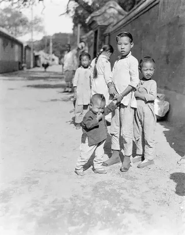 ▼北京的几个小孩在胡同里玩耍,当时的小孩穿着都十分的朴素,不过孩子们过得快乐。