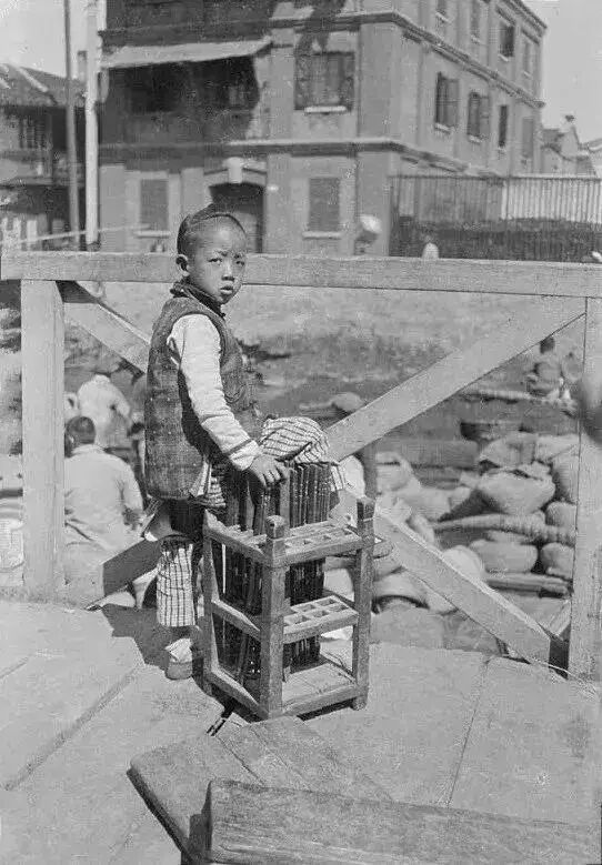 ▼1917年,上海,一名小孩坐在桥上看着来往的行人,听到背后的声音变回了头。