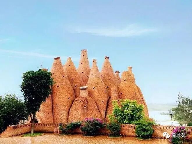 它就像是一个“东方魔幻城”,小镇里的红砖建筑和湛蓝的天形成鲜明的对比,仿佛来到了一个神秘古国