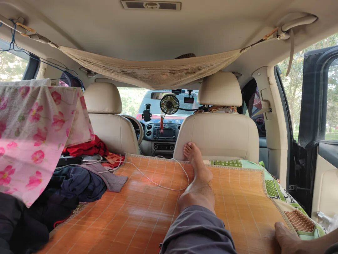 实在没法再下楼去车里取了,就这么躺下吧,至少空间比车里大多了,能躺平并伸展开了,也没有那么闷热了。