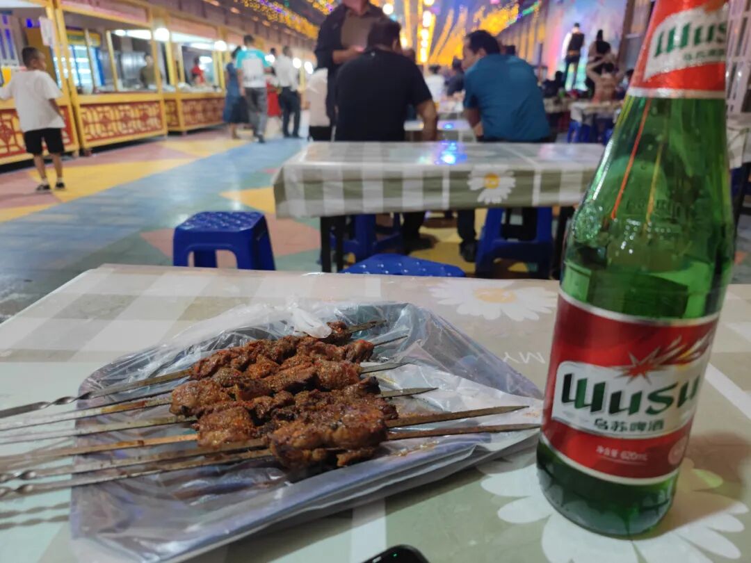五个串一个腰子一瓶啤酒,一个人撸串喝酒也挺无聊的,而且我现在酒量极差,一瓶啤酒就晕。
