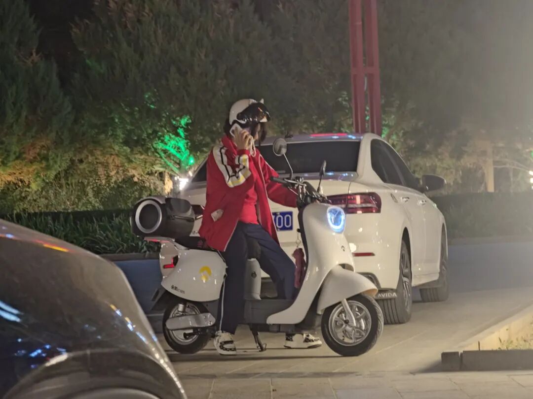 回到车里睡觉,终于拍到我之前说的那个,猫耳朵的电动车头盔,是不是很可爱。