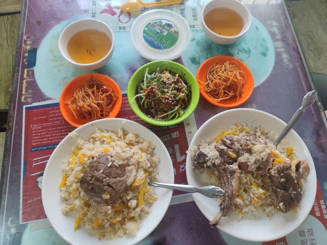 送他去机场的路上,我俩吃了一顿喀什古城酒吧小姐姐当时极力推荐的抓饭,这个抓饭确实好吃,是我来新疆吃的四五顿抓饭里最好吃的,别的抓饭胜在肉,这家的抓饭胜在饭。