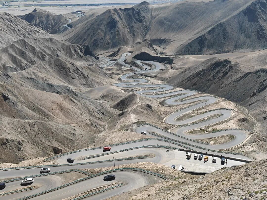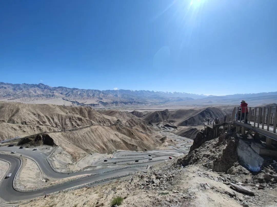 前面的路没意思,过了4200米海拔的山顶,到了一个观景台,这里的景色才是盘龙古道的美。