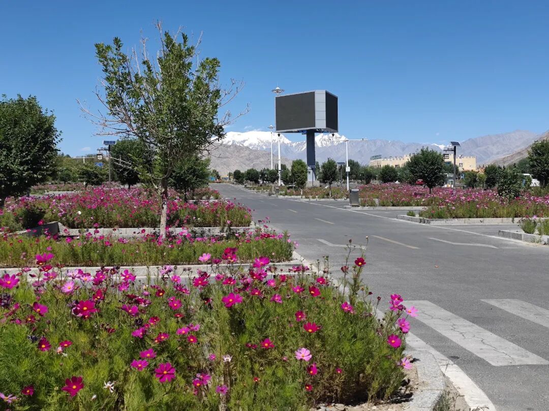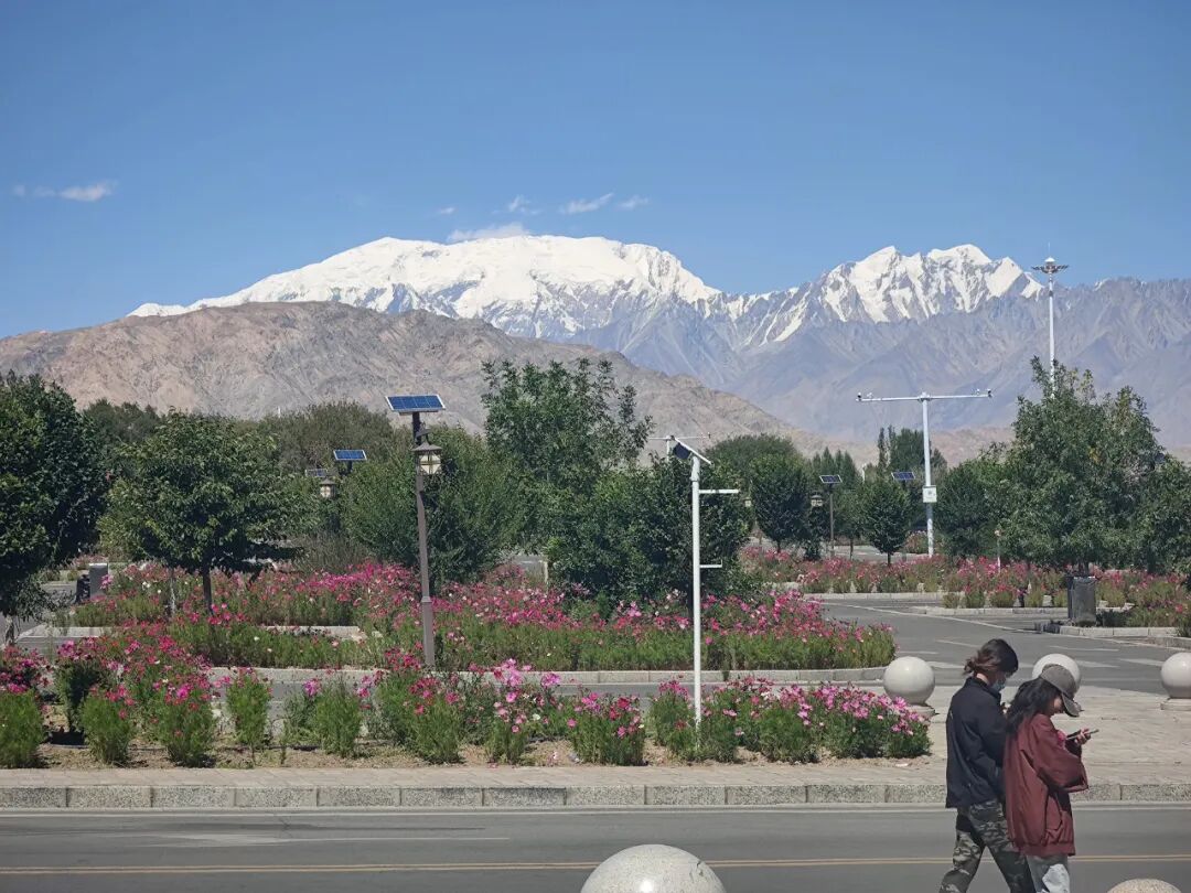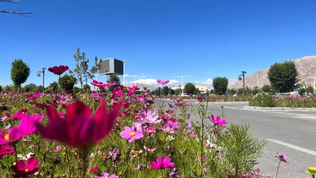 县城里的高原景色很美,遍地的格桑花,远处的雪山,清透的天。