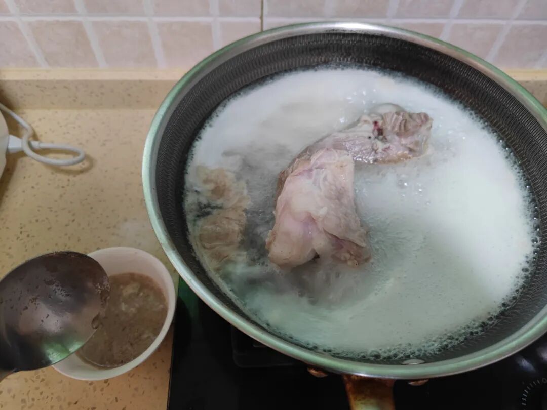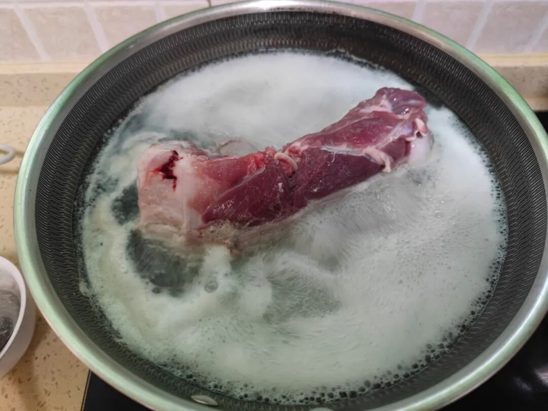 肉骨头清洗干净下锅煮,不能吃肉,但这个不是吃是提味儿的。