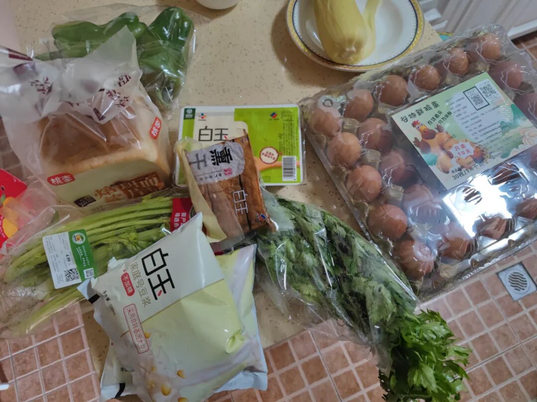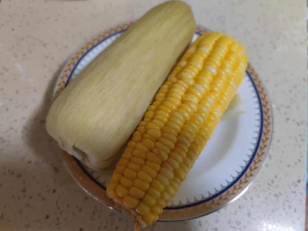 我煮了俩玉米,在物美上下单买了些清淡的菜。