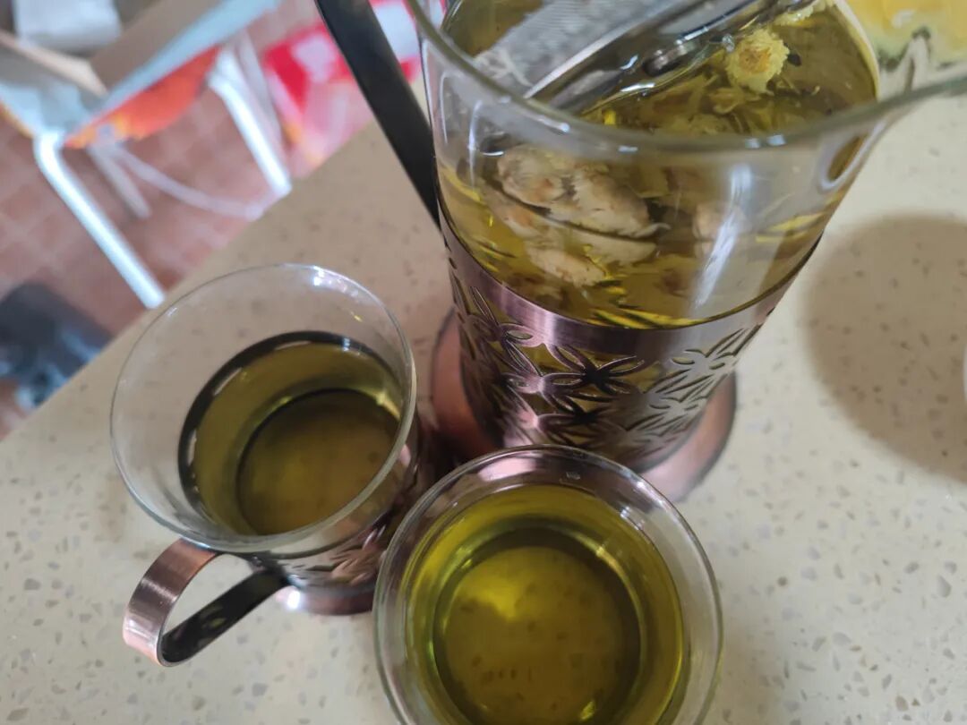 还泡了菊花,我俩一起喝,去火。