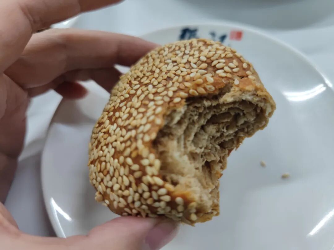 迫不及待地先来一口。烧饼和火烧很多人区分不开,简单说就是烧饼有芝麻而火烧没有,也不绝对,大多是这样。