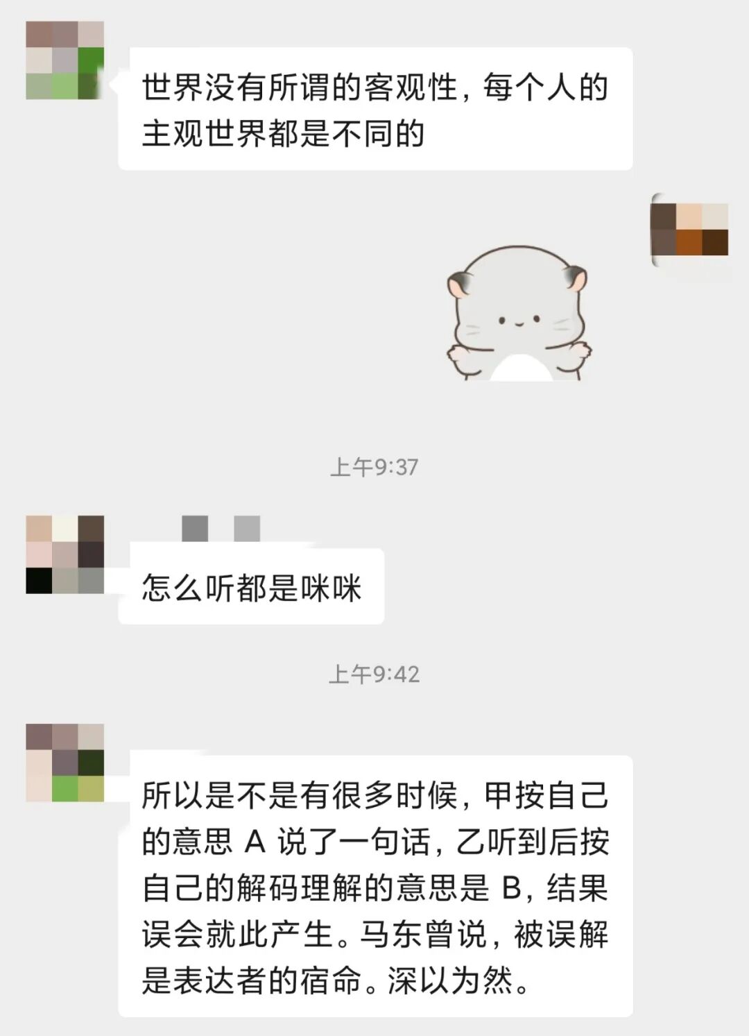 昨晚翻到这个视频,很不可思议,我从头到尾听到的都是“咪咪”,但儿子斩钉截铁地说是“咕噜”,问了一些人,真的是两派。