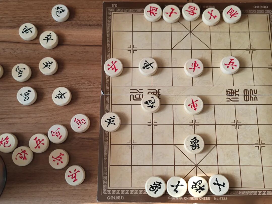 看完球赛他又要我跟他下象棋,说要看看学了半天国际象棋对中国象棋水平有没有提升,确实是有提升,我已经不需要让他子儿了。