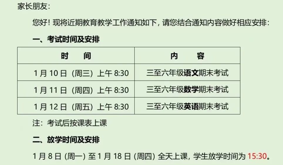 学校发了通知,周三到周五考试。