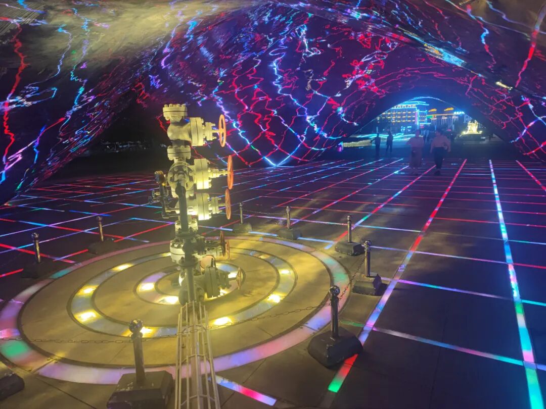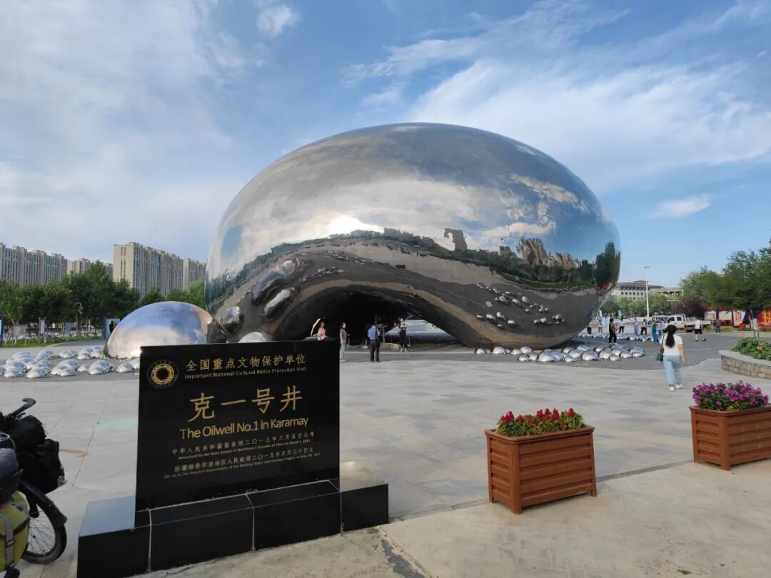 到了市里一个标志性的建筑,大油泡,这是克拉玛依的第一口油井。这时候已经接近夜里12点了,仍有不少人在。