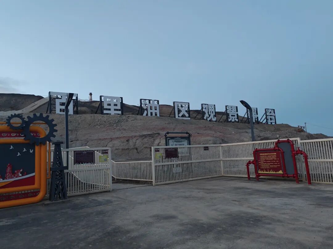 在太阳刚刚落山的时候,按照网友发给我的定位,终于抵达了克拉玛依油田。