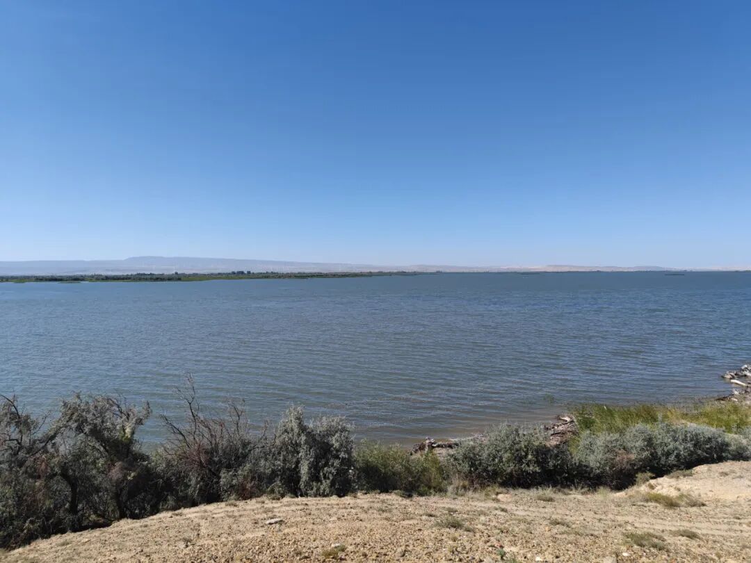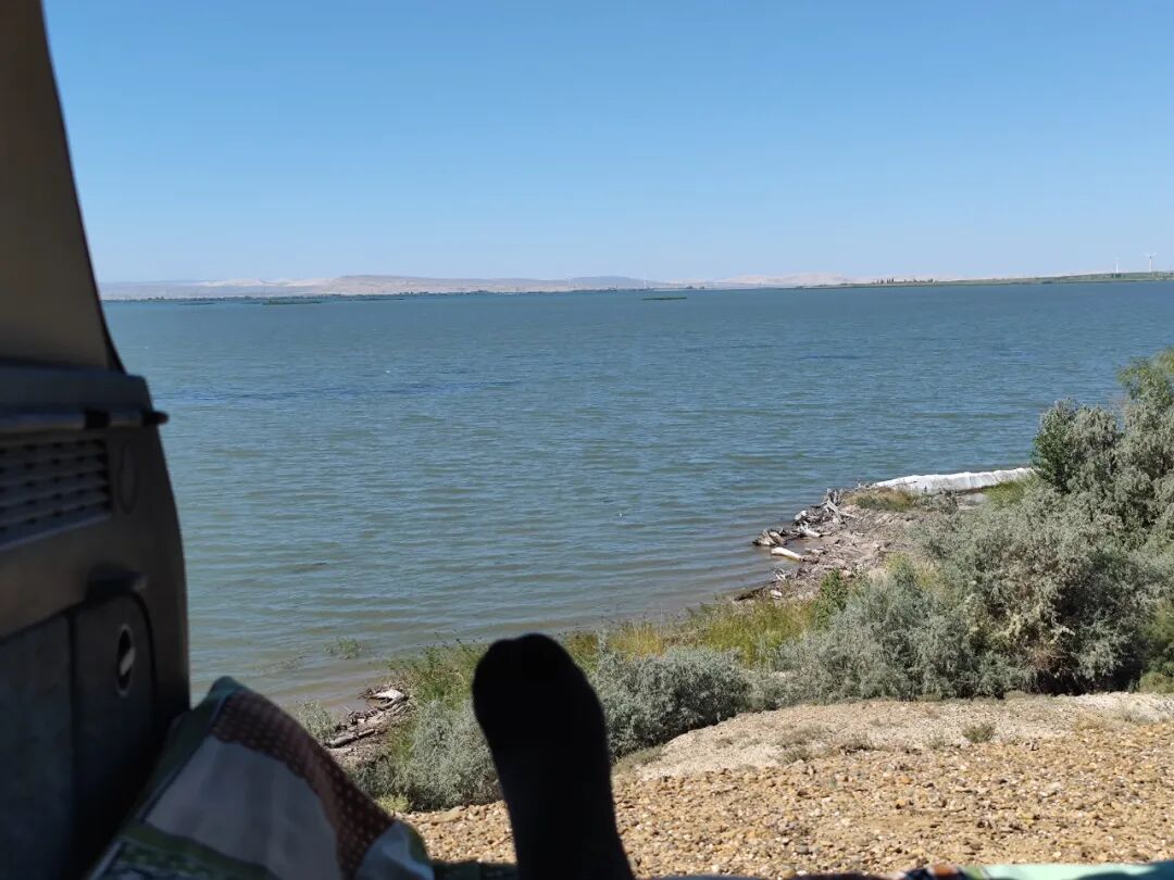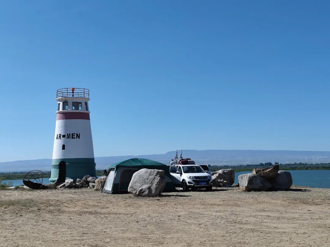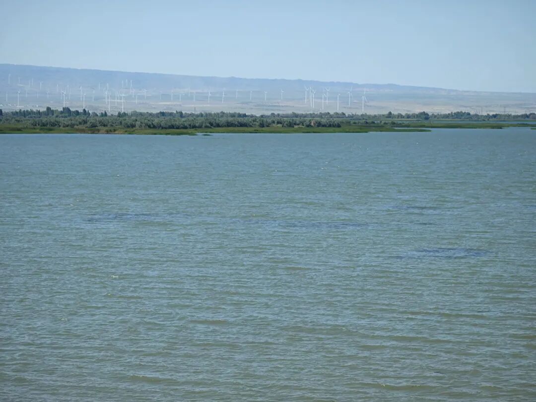 景色也可以啊,波光粼粼的湖面,远处是荒漠中的绿洲,再远处是荒漠中的风车,湖风凉爽的穿车而过,还能有更舒服惬意的事儿么?