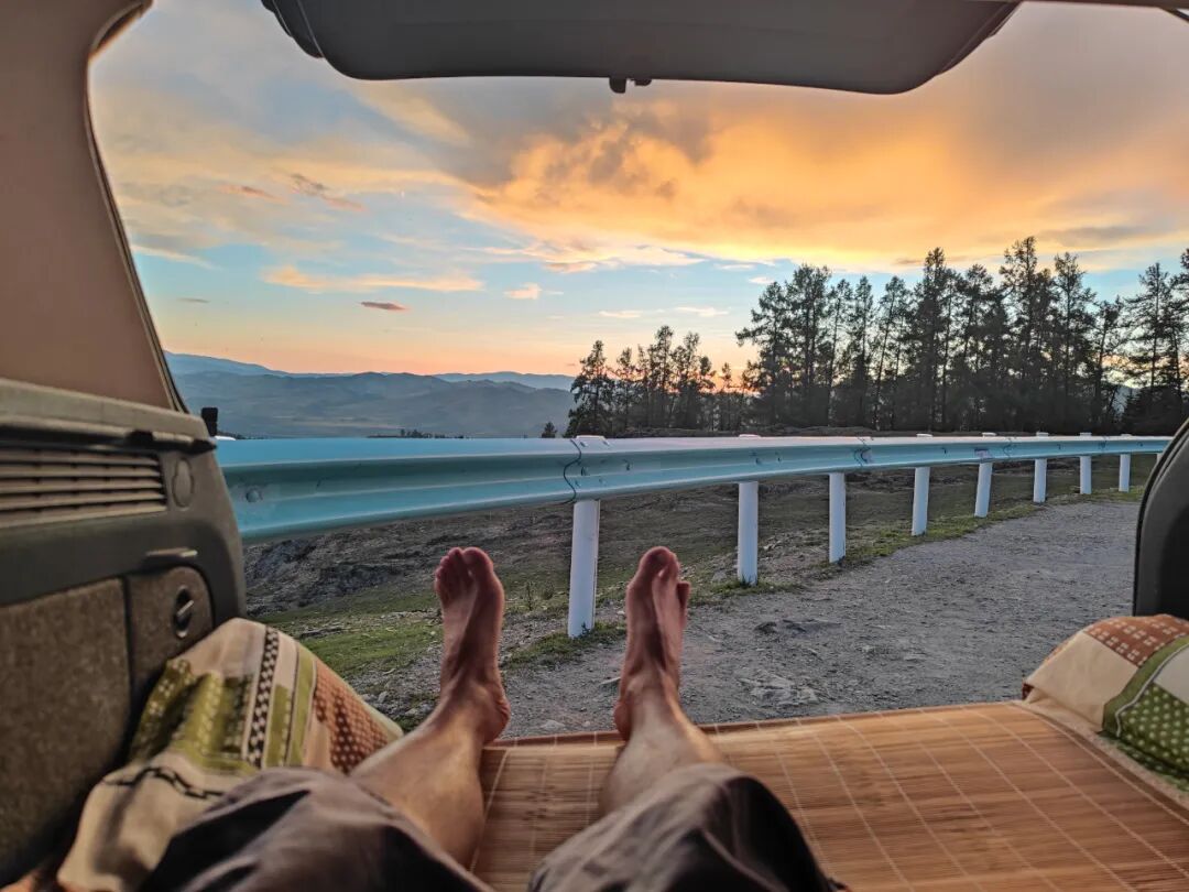 我回到空中草原,躺在车里等日落。
