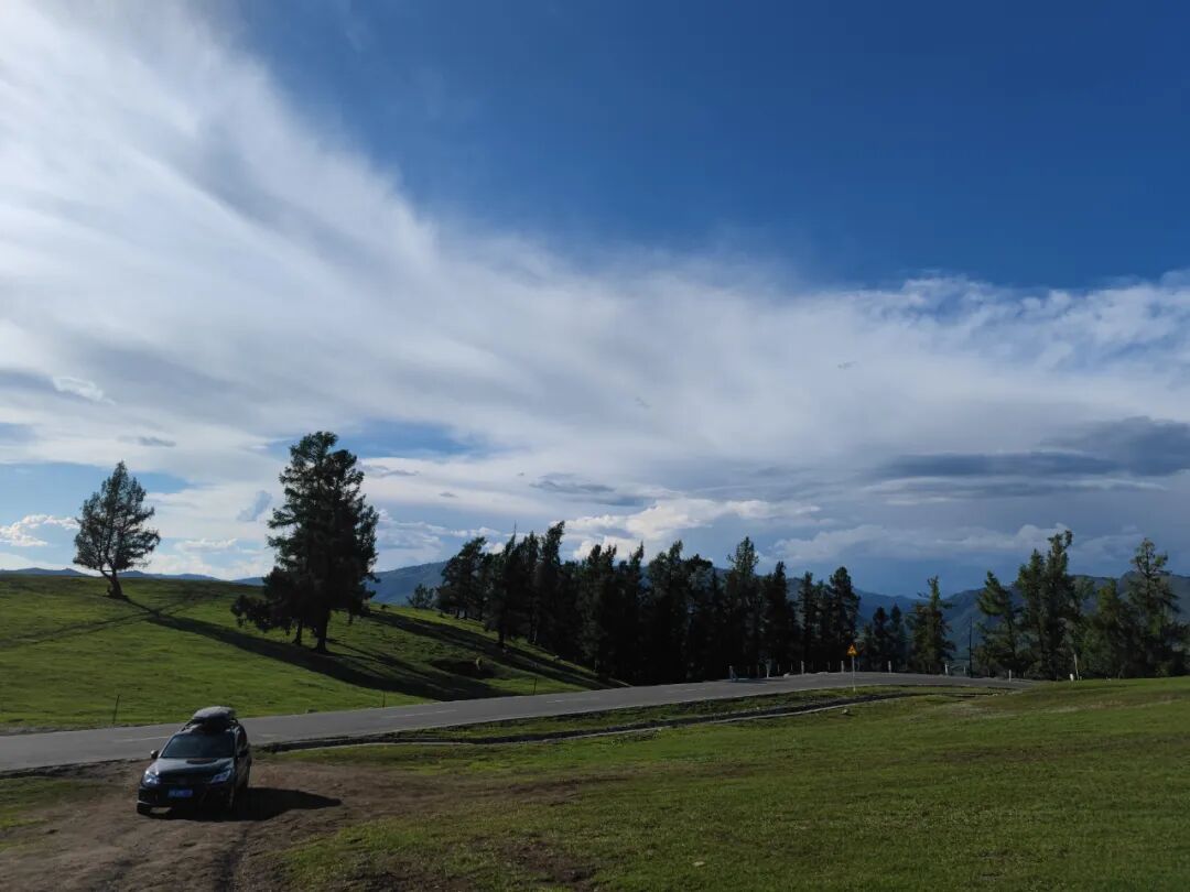 我开了大概二三十公里,被拦住了,喀纳斯景区不能自驾进去,我要把车开回白哈巴,第二天一早坐大巴车进入喀纳斯。