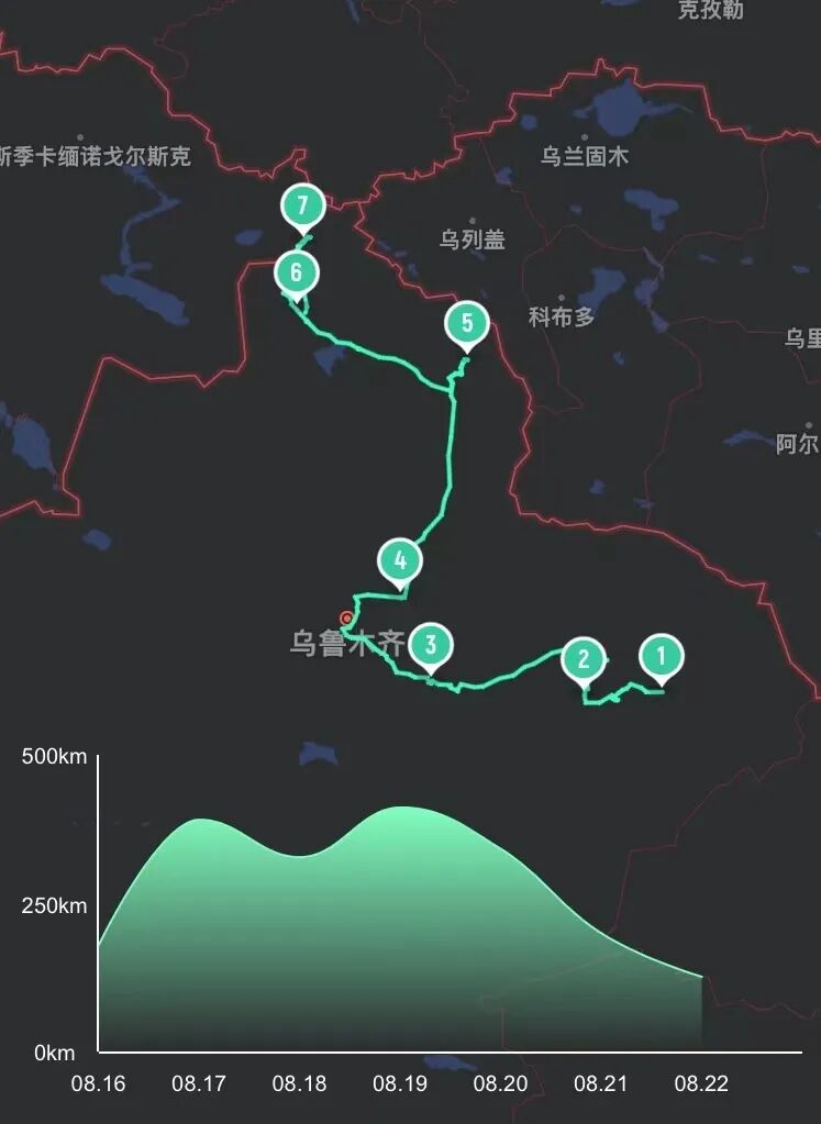 最近七天的行程,从哈密到喀纳斯,中蒙俄哈四国交界。