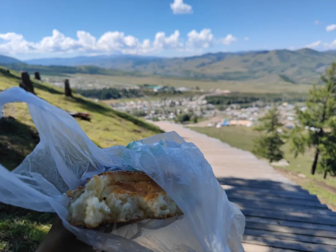 我带着昨天的半个馕和一瓶服务区接的白开水,爬到树荫处,坐在台阶上,边眺望这美丽静谧的小村落,边啃一口馕、喝一口水,虽然太阳下很晒,但树荫下极其凉快,风吹过,我的馕特别好吃,昨天在北屯买的时候,看到点评上不少网友说买少了,我觉得一个馕够我对付两天应该问题不大,现在觉得真是买少了。我这样的人在新疆应该多带些馕,能储存,能充饥,关键是还好吃啊。