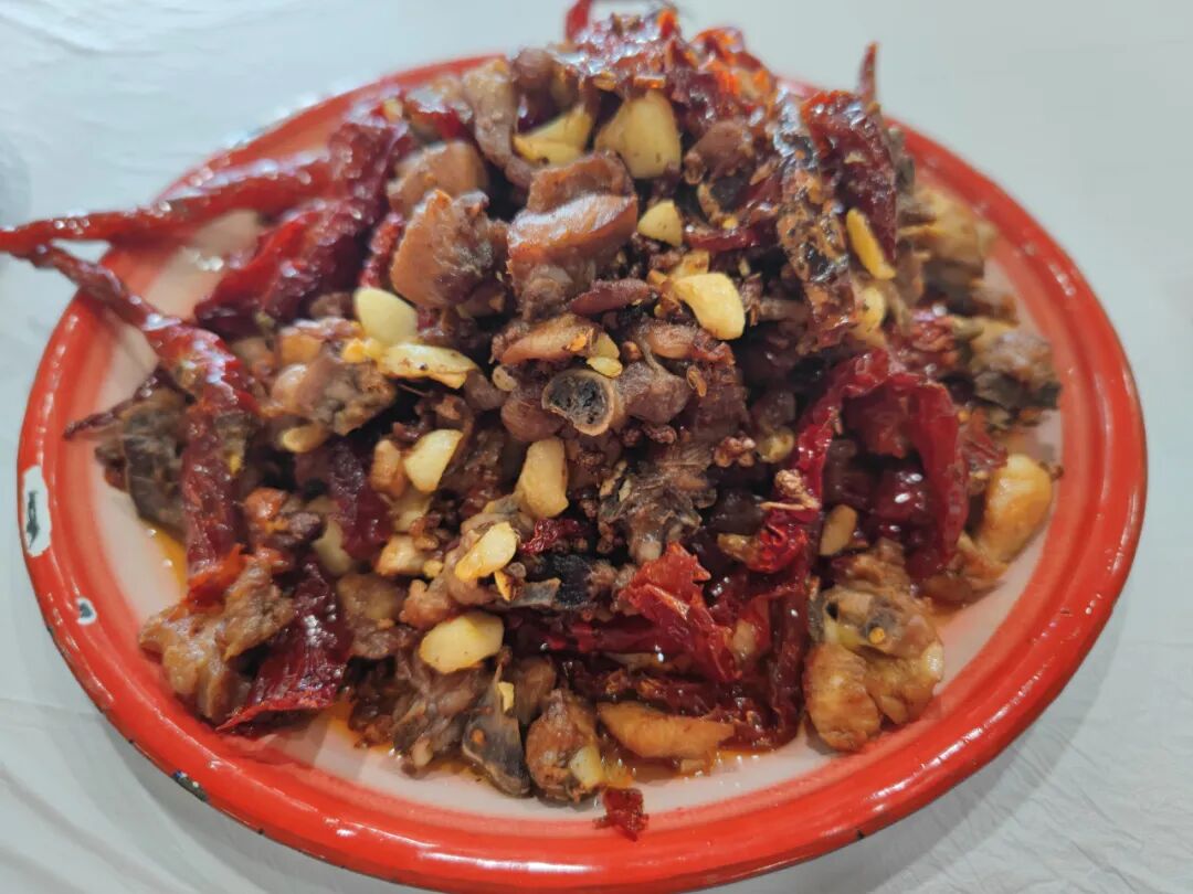 一排几十家全是辣子鸡店,这得是这个地方多有名的菜,我不得不尝尝了。