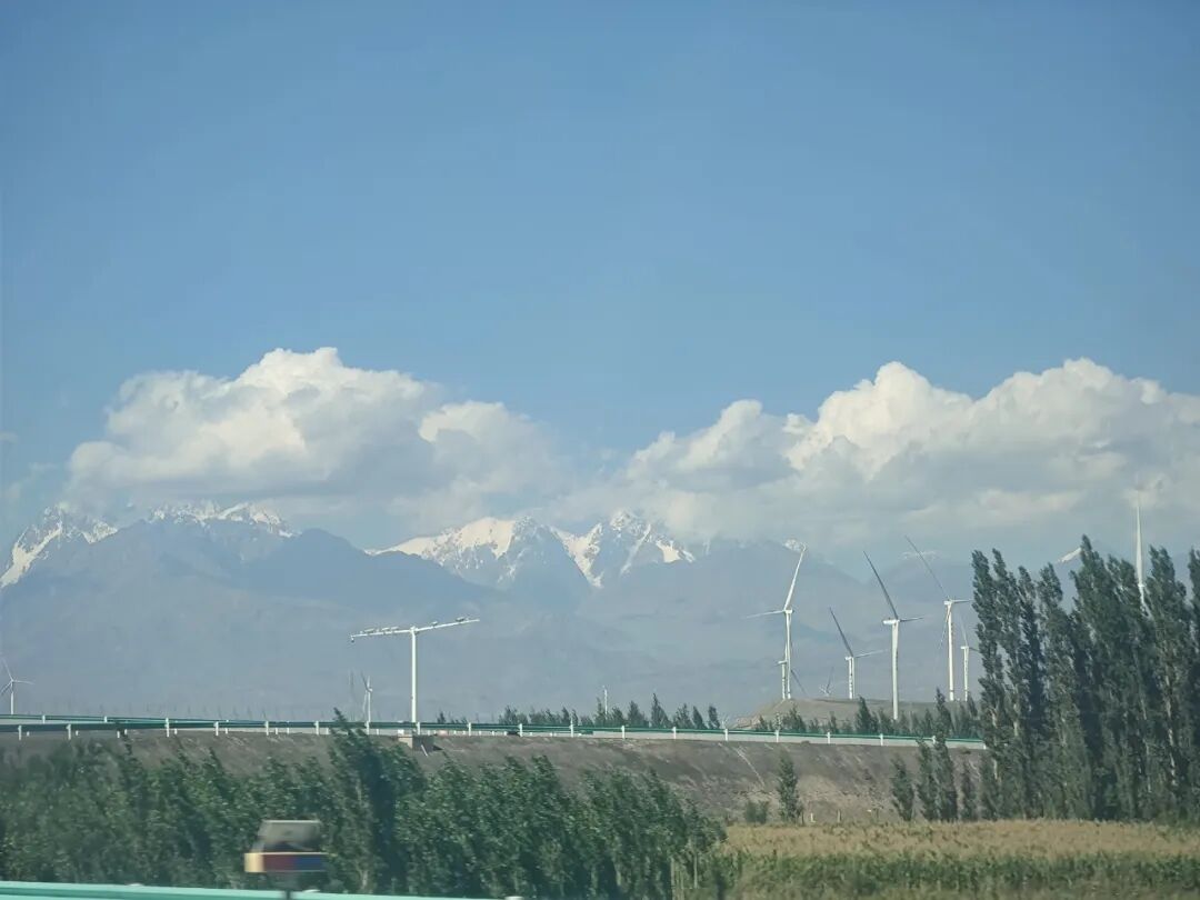 天山的积雪,附近的河湖大多是这积雪融化而来。