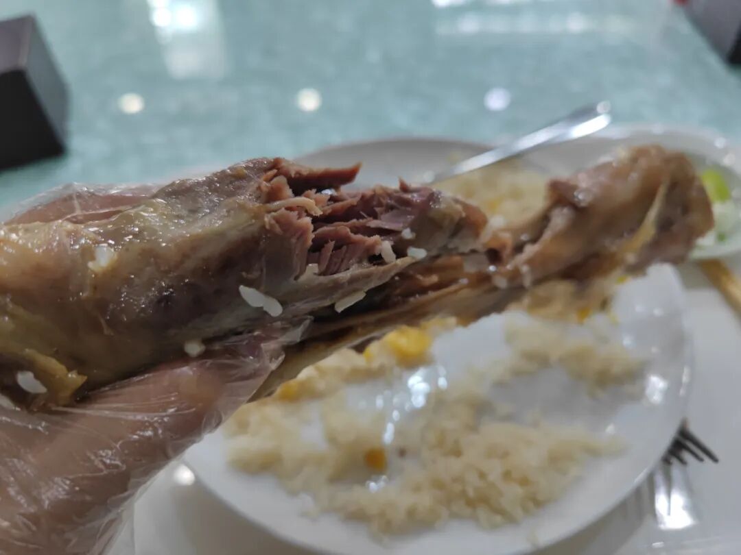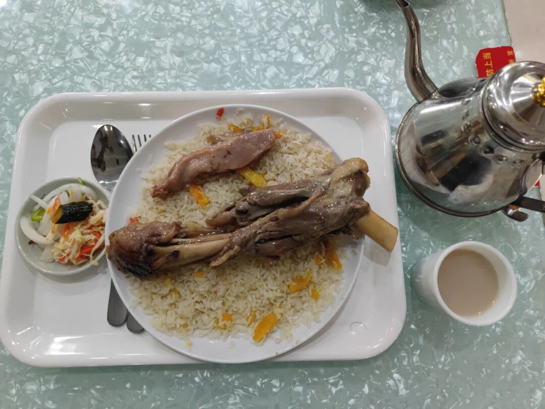 搭配各种羊肉的抓饭,羊前后腱子、羊排、脖子、碎肉。